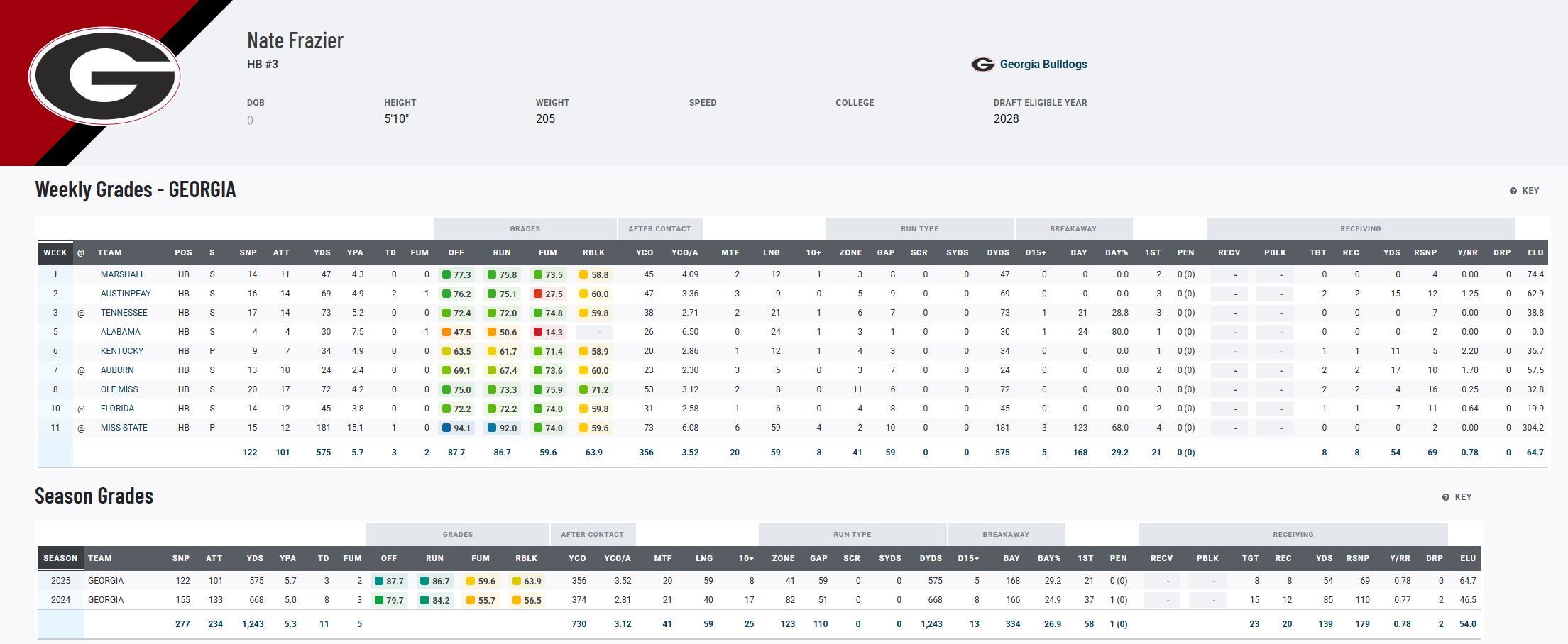 RB Nate Frazier, Georgia