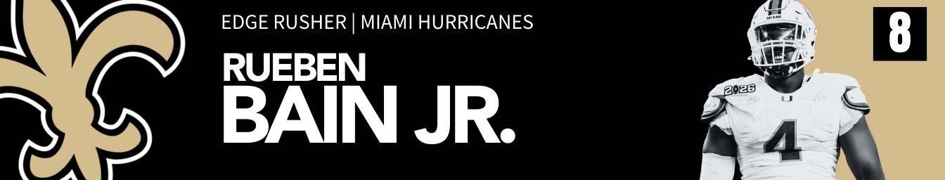 The Saints typically draft freaks, but Bain is simply too talented to pass up here, despite his Tyrannosaurus Rex arms. They could definitely turn to a cornerback here, but they need to build their line back up if they expect to compete in 2026.