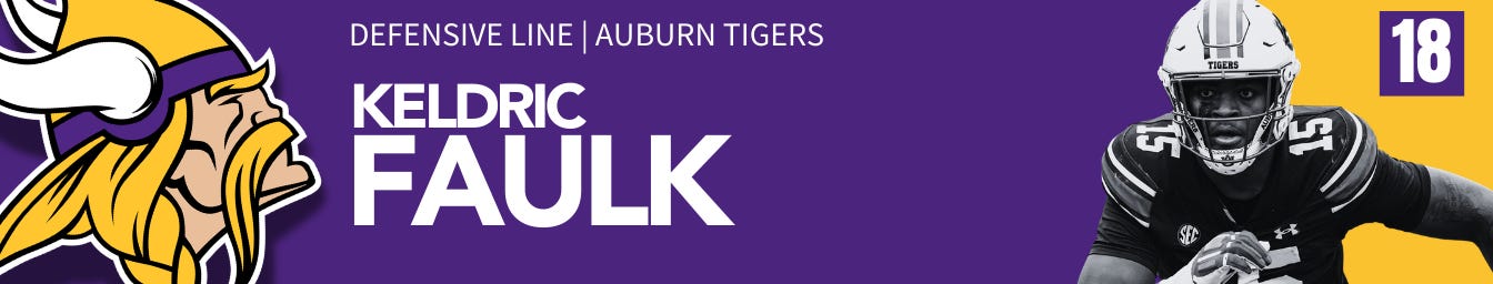 While the Vikings could go for a safety or cornerback here, they instead choose to add a versatile defensive line piece to help Brian Flores run his exotic fronts and confuse opposing quarterbacks. Faulk is more of a defensive tackle, in my book, but he fits anywhere on the line.
