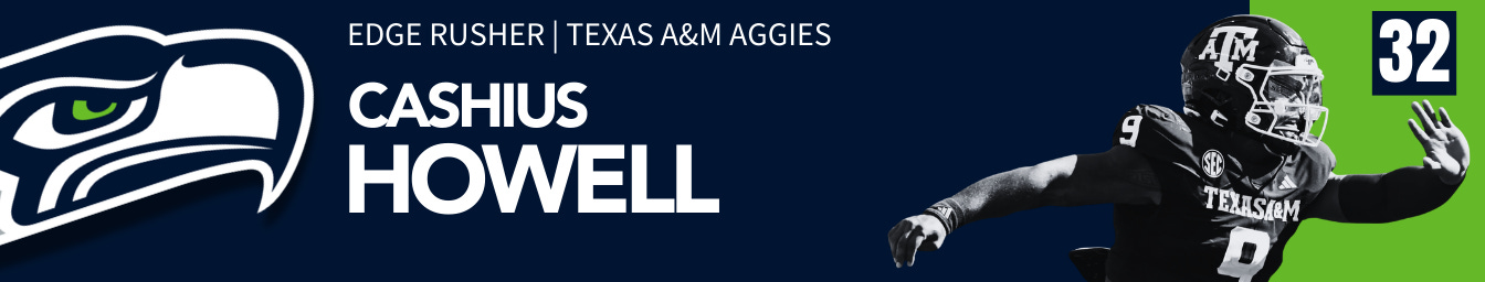 The Seahawks pass on cornerback and running back and instead bolster their defensive front with Howell, a bendy, explosive edge rusher with short arms.