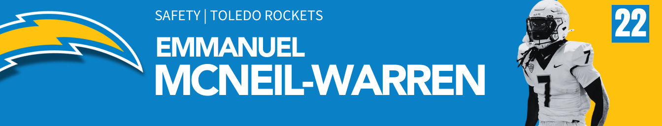 A three-safety first round feels inevitable at this moment, mostly because all three of the safeties selected would be in conversation for SAF1 if they weren’t in the same class. RJ Mickens and Elijah Molden played well for Los Angeles last year, but McNeil-Warren gives them a higher ceiling in coverage.