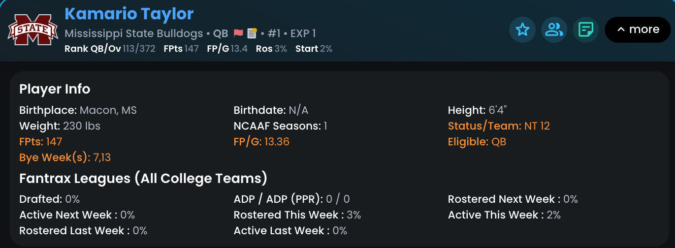 Surprised he stayed. Dual-threat with a good arm and strong game sense. Could be a sneaky C2C contributor.