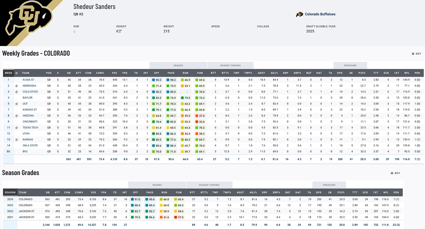 All eyes will be on Sanders at the Shrine Bowl, thanks to a collegiate career that’s been nothing short of electric. He began at Jackson State, amassing over 7,000 passing yards and 70 touchdowns while leading the Tigers to a 23-3 record and an HBCU Championship. After transferring to Colorado, Sanders played behind one of the worst offensive lines in the country but still thrived, throwing for over 4,100 yards and 37 touchdowns in 2024. Despite being the most sacked quarterback in back-to-back seasons, he earned accolades like Big 12 Offensive Player of the Year and the Johnny Unitas Golden Arm Award. His career stats—over 14,000 passing yards, 134 touchdowns, and a 70% completion rate—speak for themselves.