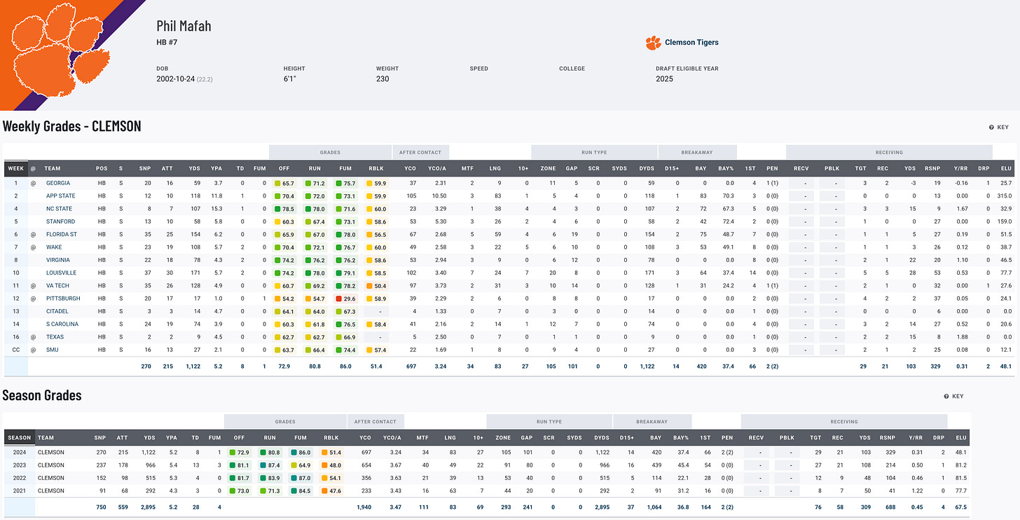 Clemson RB Phil Mafah