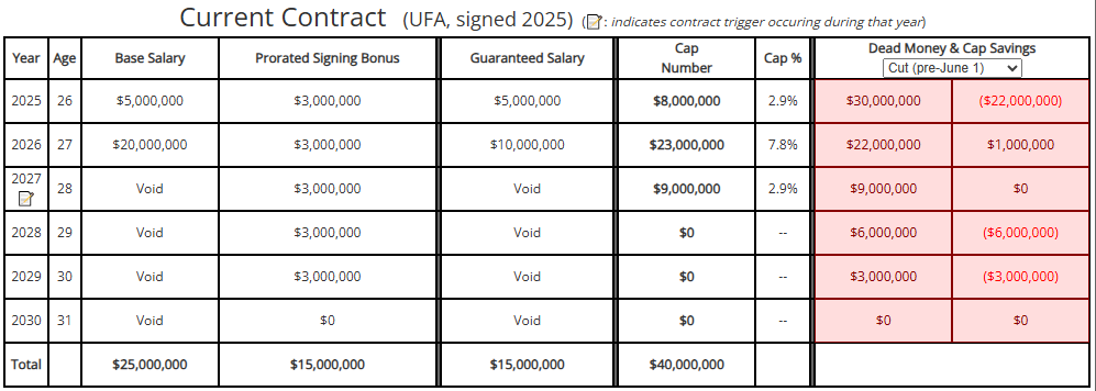 Fields had offers from multiple teams this offseason, making him one of the more coveted free-agent quarterbacks on the market. He landed with the New York Jets on a prove-it deal, though $30M of the two-year, $40M is guaranteed. The deal structure gives the Jets flexibility to get out, should Fields fail to establish consistency. But they undoubtedly hope he does, earning a long-term deal, and fixing their long-time quarterback void.