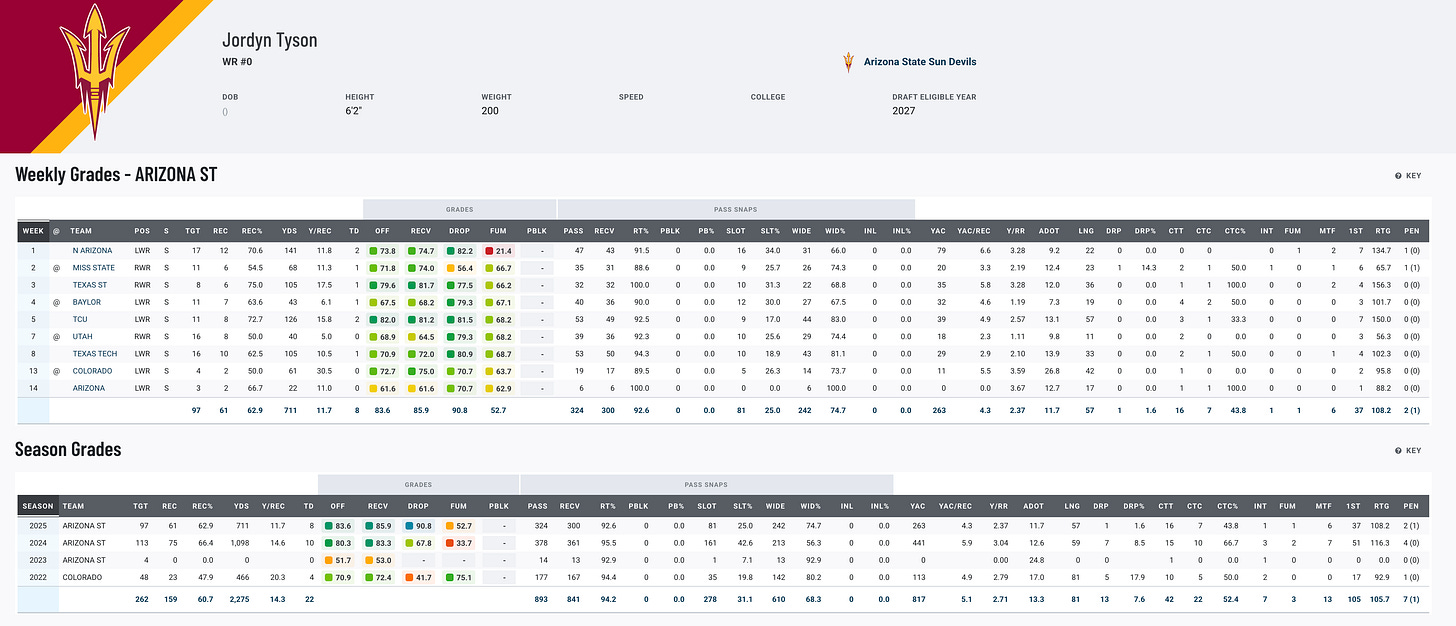 🔱 Jordyn Tyson — WR, Arizona State
