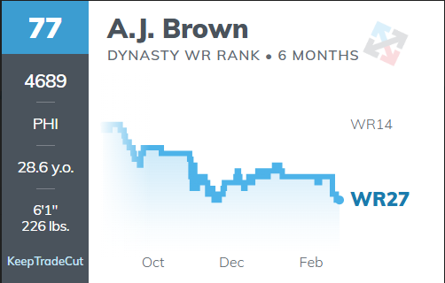 Seeing A.J. Brown priced as WR27 in dynasty ADP feels like a quiet win for contenders. At 28 years old, Brown is being pushed down boards due to uncertainty, frustration, and his situation, not decline.