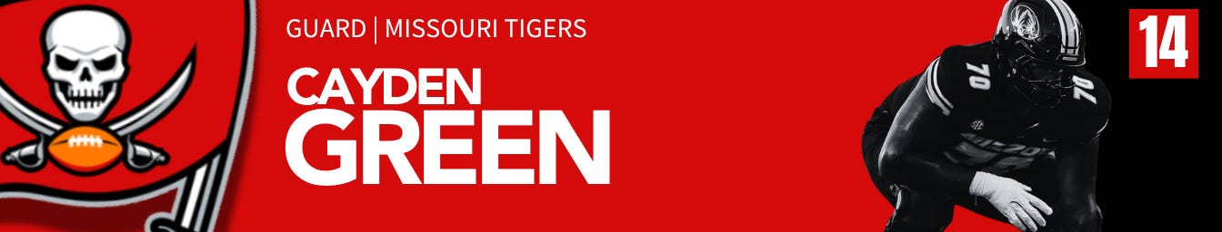 The Buccaneers should look to bolster the interior of their line, as it hasn’t gone according to plan over the last year and a half. Green does exactly that, as his best position at the NFL level will be on the interior, despite solid play at tackle in 2025. He is an excellent athlete who has consistently improved, with fantastic leg drive, anchoring ability, and power to move players. He’s not quite in the Alijah Vera-Tucker mold, but his versatility will make him even more valuable when next year’s draft comes around.
