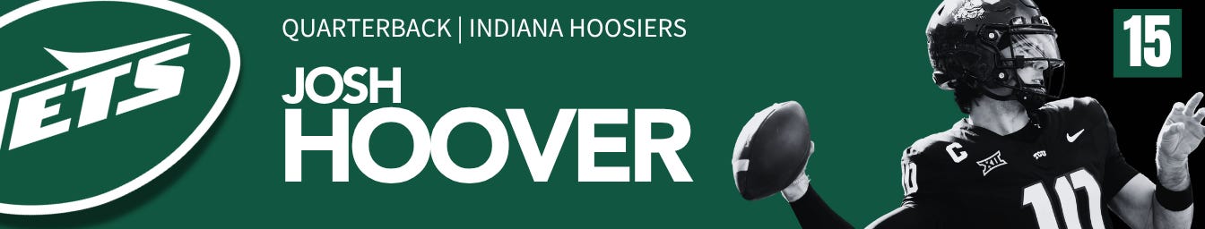The Jets passed on a quarterback because they had more opportunities, and here, they land Hoover, a player I expect will take a massive leap while playing under Curt Cignetti in 2026. Hoover already displays the traits of a high-level NFL quarterback, with consistent read progressions, occasionally elite ball placement, and all the physical tools you can ask for. Consistency sometimes eludes him, but he will be one of the most experienced quarterbacks in next year’s class, and if he takes a step forward, he will also have more than 100 touchdown passes over his four years as a starter.